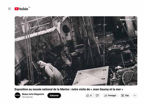 Visionnez cette vidéo réalisée par le magazine Beaux-arts à l’occasion de l’exposition de Jean Gaumy au Musée National de la Marine.