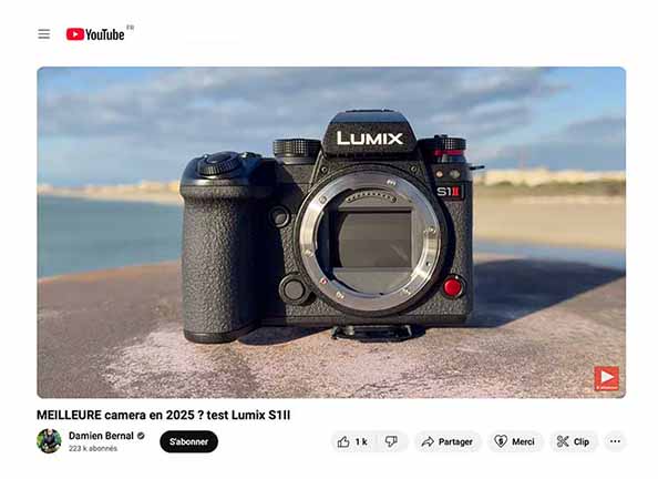 Visionnez la vidéo du test du Lumix S1 II sur la chaîne You Tube de Damien Bernal.