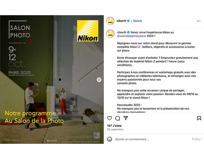 Le salon est une occasion unique d’assister à des conférences très intéressantes. Nikon vient de dévoiler le sien sur son compte Instagram.